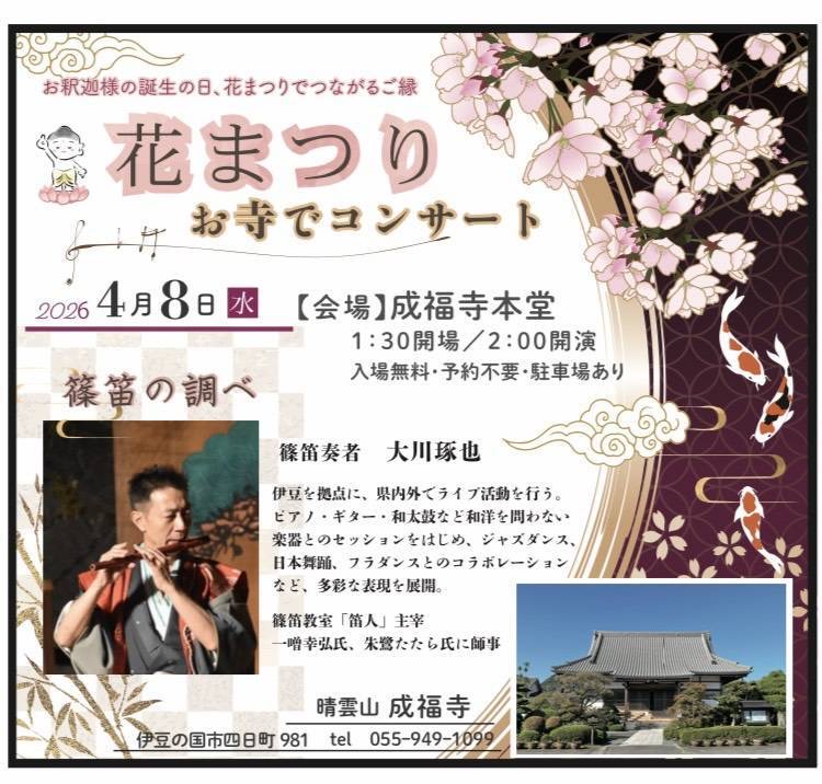 家にいながらゆっくりと篠笛の演奏をどうぞお楽しみください。